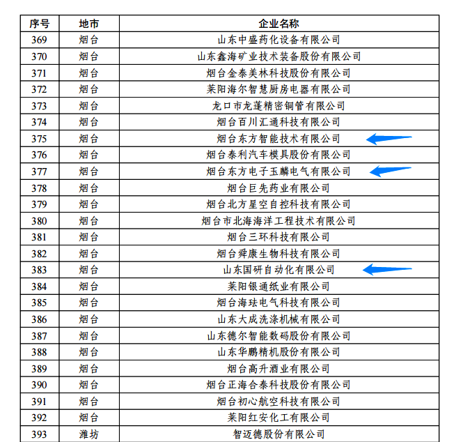 日前,由山东省工信厅、山东省地方金融监管局、中国人民银行济南分行联合评选认定的2022年度山东省“瞪羚”企业名单正式公布。我集团公司的烟台湖北颐和世家科技有限公司玉麟电气有限公司、山东国研自动化有限公司、烟台东方智能技术有限公司等三家权属企业入选,认定日期为即日起至2025年12月31日。